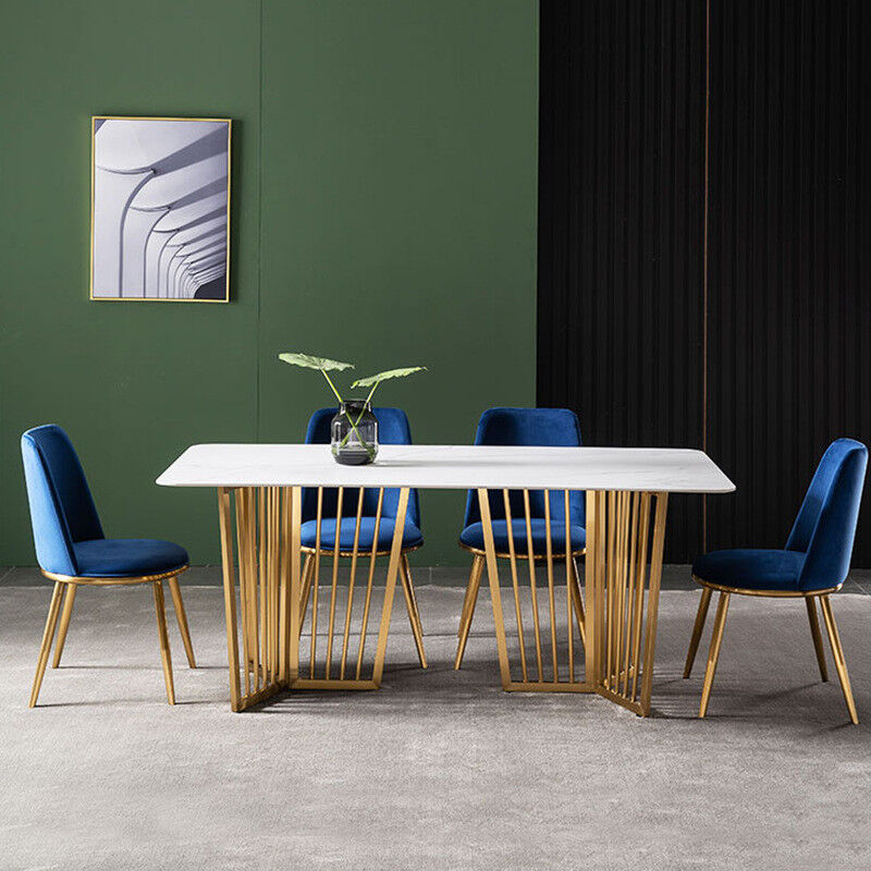 Luxury Dining Table White Marble Dining Table With Stainless Steel Leg