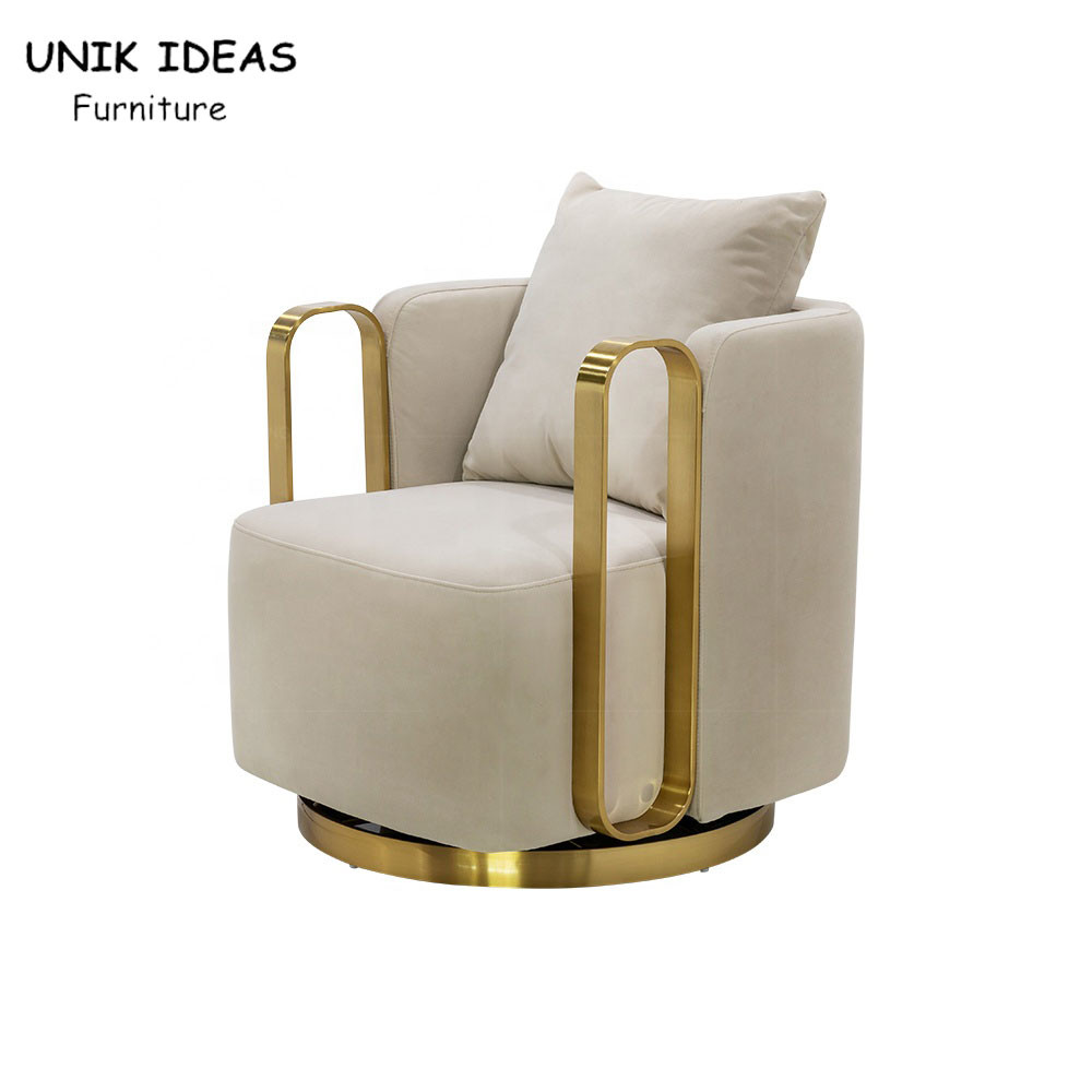Featured gold stainless steel plus high-end gorgeour black,process,even long-term use does not change color rust.This is lounge sofa chair can revolve.