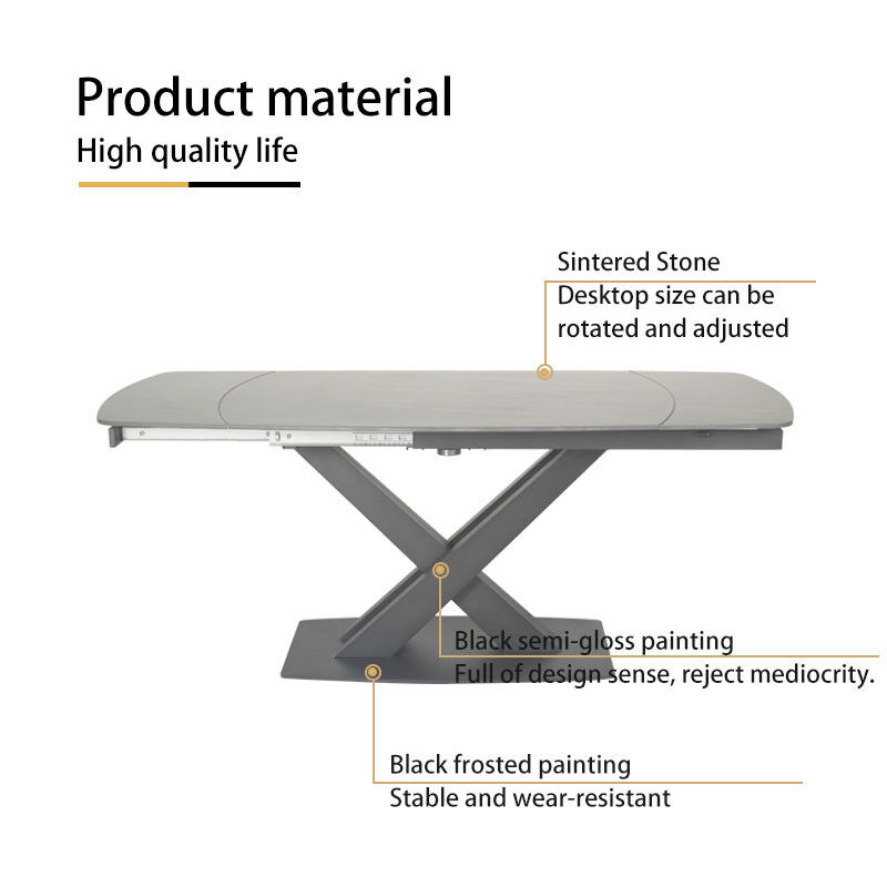 Black Extension Extendable Adjusted Dining Table Nordic Modern Style