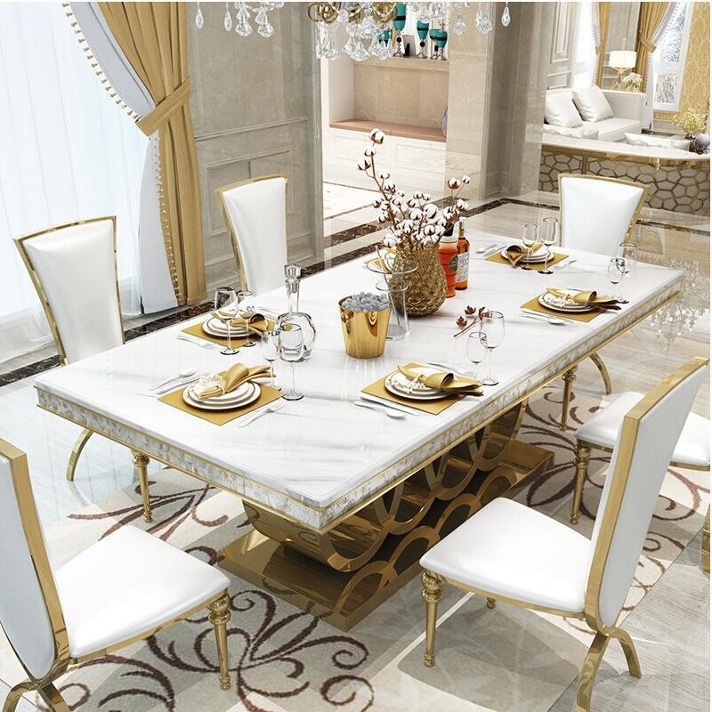 Rectangular marble table with 4 / 6 / 8 chairs: