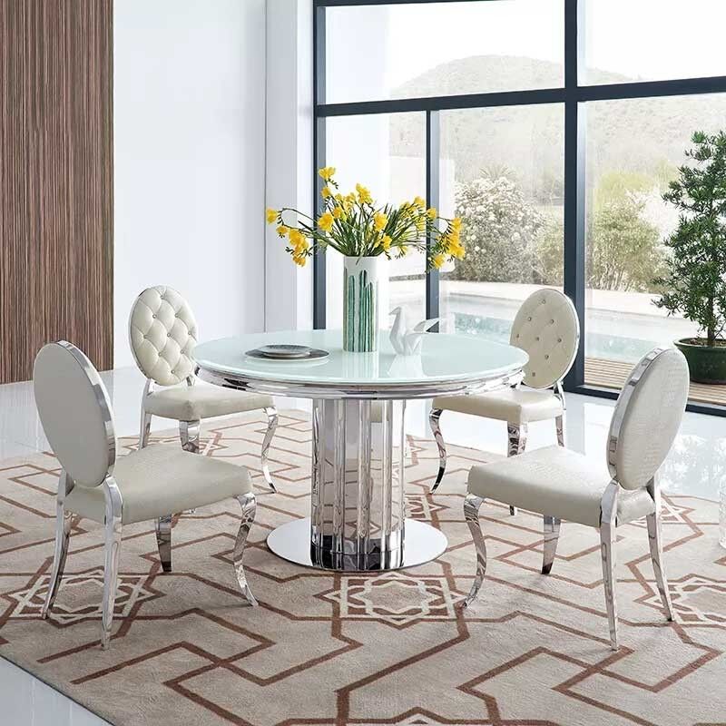 Luxury Glass Dining Room Table Set 6 Chairs With Metal Leg Chrome