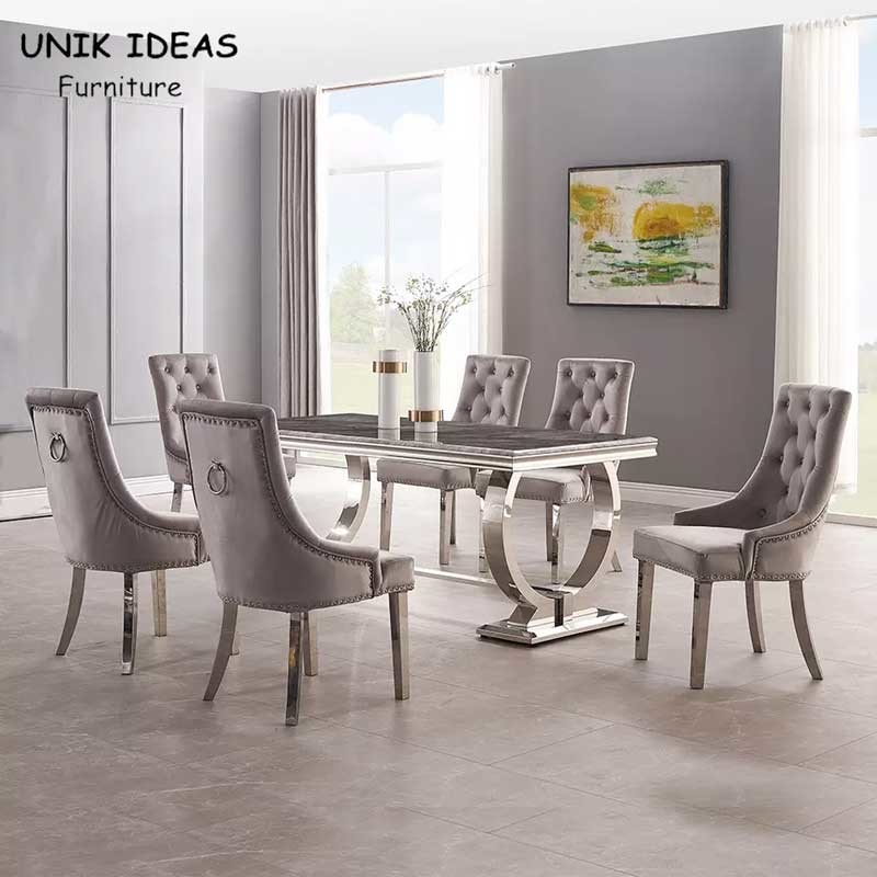 6 People Dining Room Sets Luxury Restaurant Stainless Steel Dining Tables