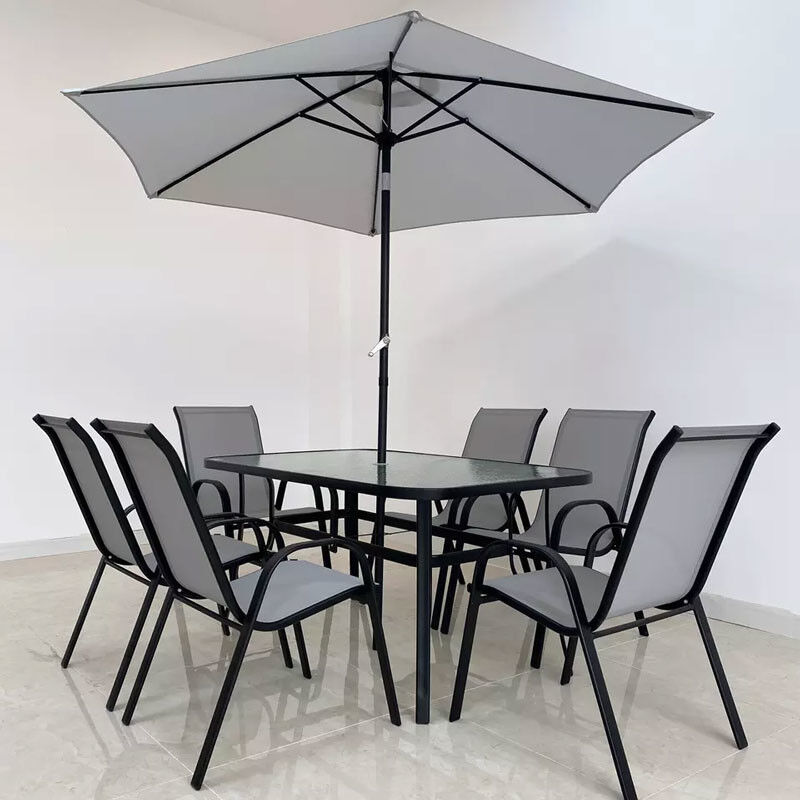 7 Piece Modern Metal Steel Outdoor Patio Conversation Dining Set